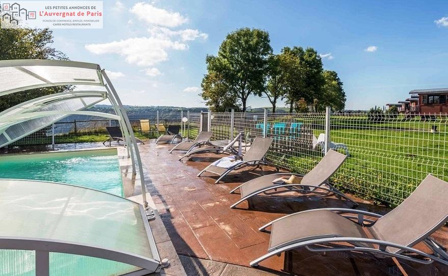 Le parc propose aussi un coin piscine chauffée et sécurisée avec abri amovible, un sauna et une aire de jeux pour les enfants.